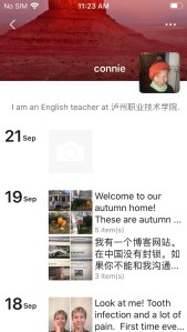 On my WeChat blog moments (WeChat is similar to Facebook), I post several times a week about what I’m up to with pictures of me, my mom, my hometown, things I’ve been doing and my community’s news. Comments abound, with likes, sympathetic emojis or words of cheer or surprise.