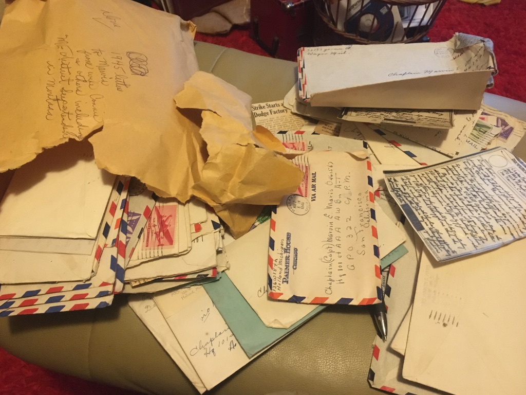 Previously, I mentioned I’d been going through the World War II correspondence between my grandmother, Connie Maris in Holland, Michigan, and her husband, Chaplain (Captain) Marvin E. Maris, serving overseas’ in New Guinea and the Philippines from 1944 – 1945 (Below is my grandfather’s sketch of his Pacific service journey.)